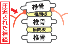 硬くなった筋肉は、単に筋痛を起こすだけでなく、硬くなった筋肉が椎骨を引っぱり神経の出口である椎間孔を変形させ、神経をしめつける。よって、神経の伝達が低下し筋肉と血管を収縮させ、様々な症候を発現させる。